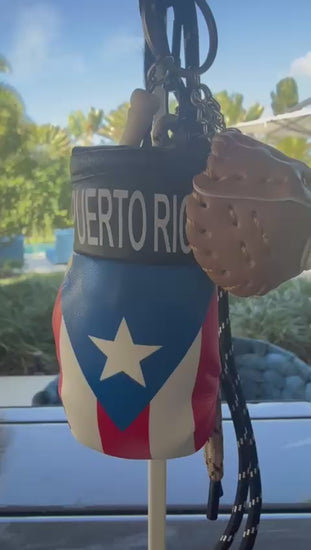 This mini boxing glove with baseball details is a fun accessory for your car or your bag, inspired by the passion for sports and travel.